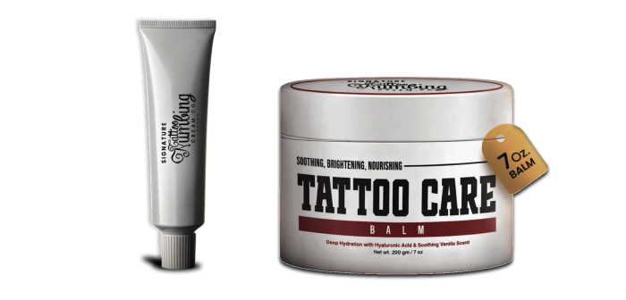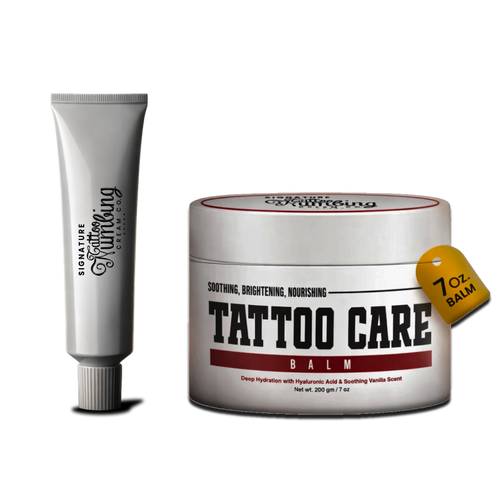 Signature Tattoo Before & Aftercare Duo – Numbing Cream (10g) + Healing Balm (7oz) for Comfortable Sessions & Vibrant Ink – Natural, Skin-Soothing Formula